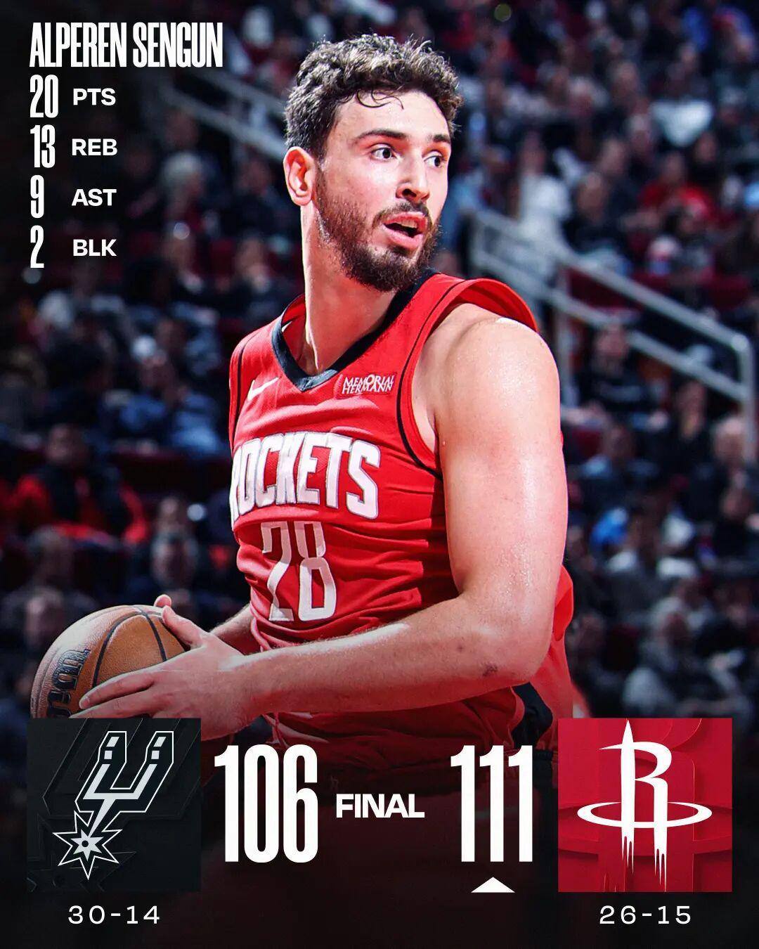 申京20+13+9文班21中5 火箭险胜马刺