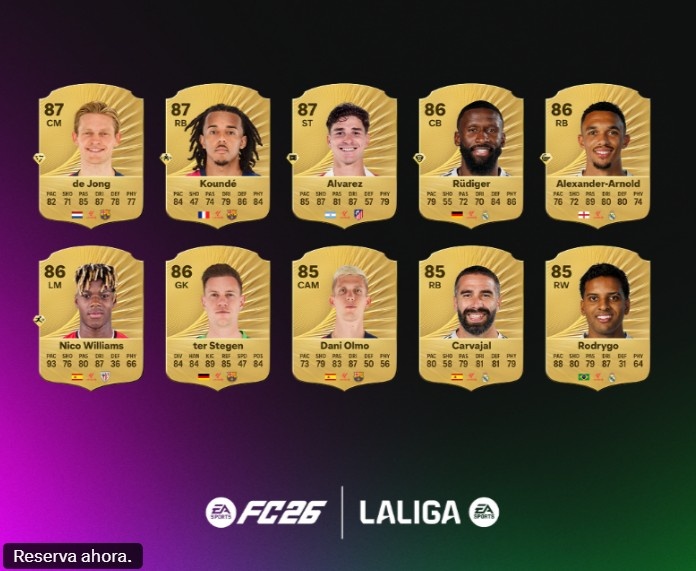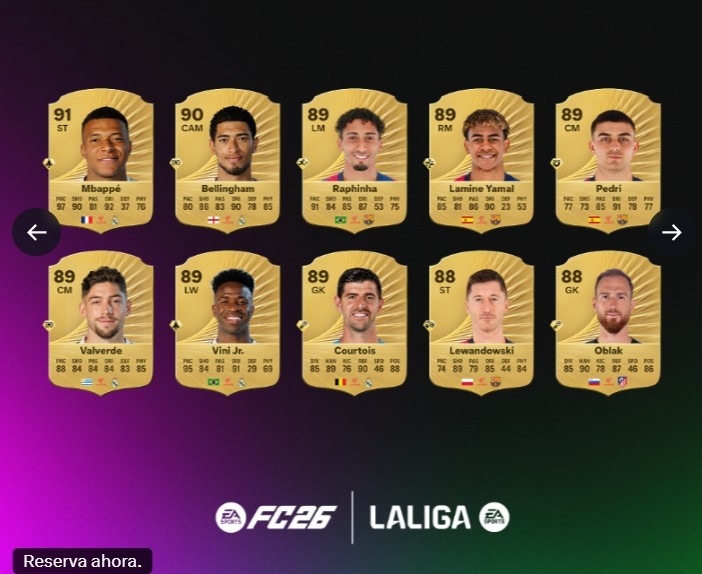 9月10日讯 FC26公布了西甲球员评分榜,其中姆巴佩居首,具体如下: